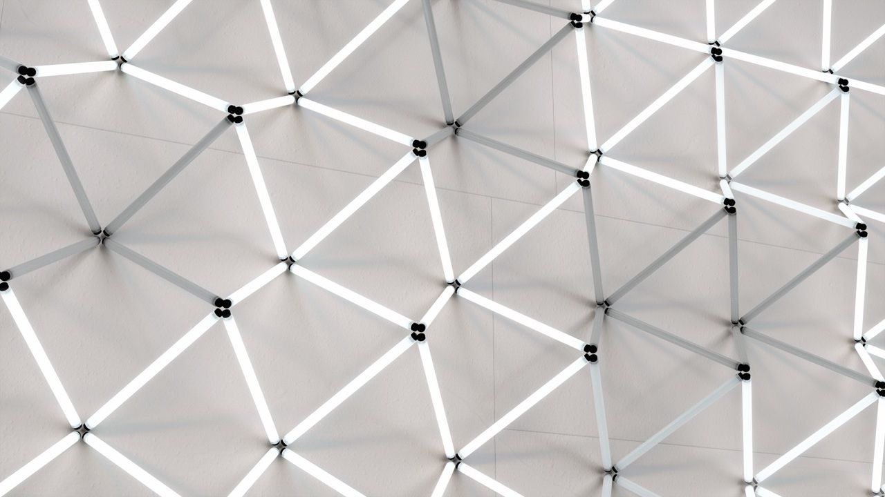Augmenting interior design through art and technology: The notion of kinetic walls is adding a new dimension to the room. Geometrical shapes and generative patterns react to live data, displayed on a large-scale screen to neatly integrate into the space.