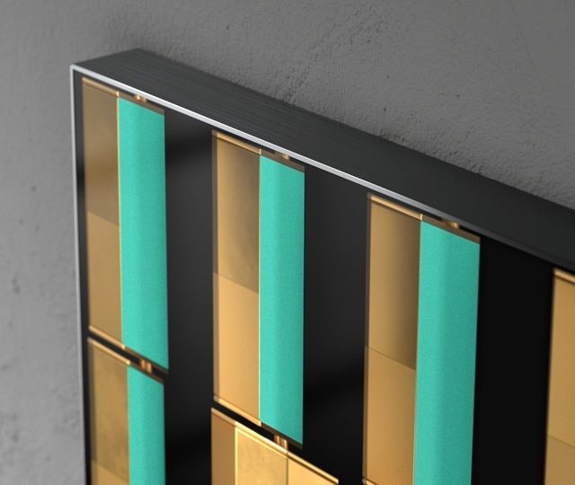 Customizable colours and materials enhance the visual quality of the moving shapes. Through their motion the characteristic grids in the artwork build a harmonic balance to the space they are in, adding a unique depth to the atmosphere.